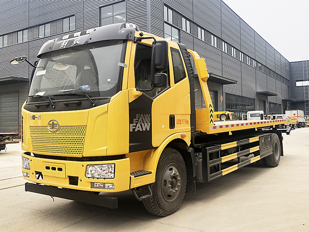國六黃牌解放J6平板一拖二清障車
